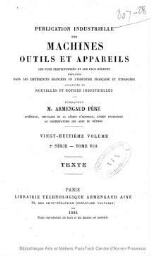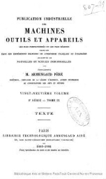 Publication industrielle des machines, outils et appareils les plus perfectionnés et les plus récents employés dans les différentes branches de l'industrie française et étrangère. Tome 24. Textes et planches.