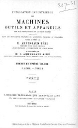 Publication industrielle des machines, outils et appareils les plus perfectionnés et les plus récents employés dans les différentes branches de l'industrie française et étrangère. Tome 1. Textes et planches.